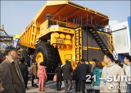 此次寶馬展上,徐工成功推出DE400礦用卡車。DE400是由徐州工程機械研究院研制生產(chǎn),是目前全球載重量最大的礦用卡車,載重量可達400公噸,最高速度50km/h,舉升時間24s。采用先進的交流電傳動系統(tǒng),原裝進口環(huán)保電控高性能柴油發(fā)動機,動力強勁。箱形截面結(jié)構(gòu)車架,由高強度優(yōu)質(zhì)合金鋼板和鑄鋼件制造。智能制動技術(shù),防止誤操作。符合人機工程學的駕駛室舒適安全。整車配備自動稱重系統(tǒng)、集中滅火系統(tǒng)、快速注油系統(tǒng)、自動潤滑系統(tǒng)及各種安全設(shè)備,保證整車運行安全高效。